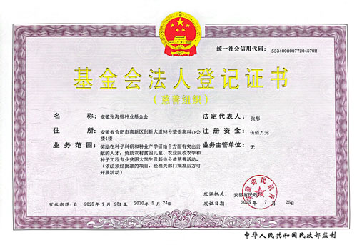 安徽张海银种业基金会由张海银先生和安徽荃银高科种业股份有限公司于2013年共同创立,以“助力种业振兴,共创美好社会”为愿景,秉承“励志种业、促进创新、服务三农、回报社会”的使命,坚守“心守拙朴、开放融合、探索改变”的价值观,聚焦助力种业科技创新、乡村振兴等领域,开展种业人才激励、助农助困、奖学助学、农耕自然教育、公益行业区域生态共建等公益项目和慈善活动,在“服务国家、服务社会、服务群众、服务行业”社会组织职能定位中发挥了有益的积极作用。